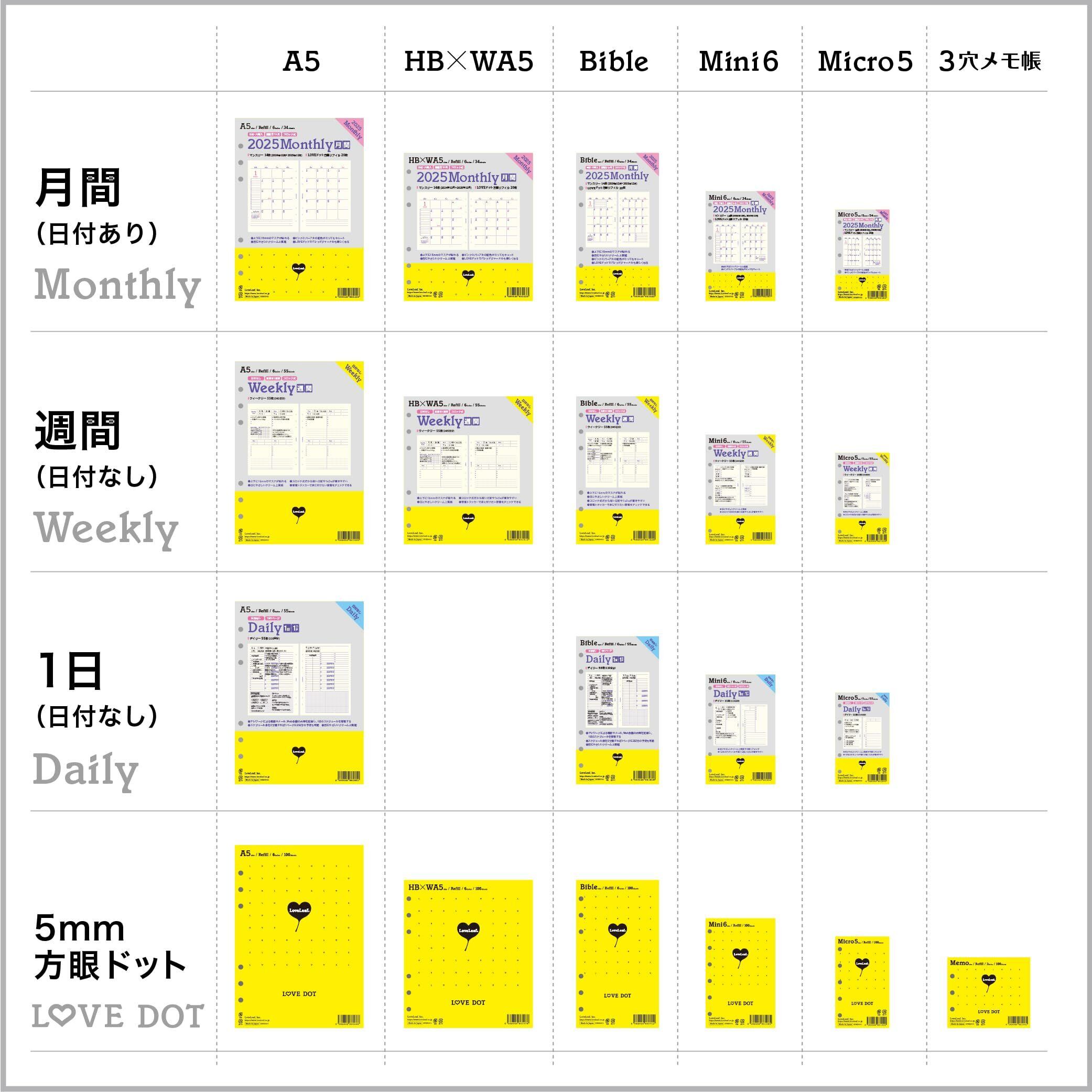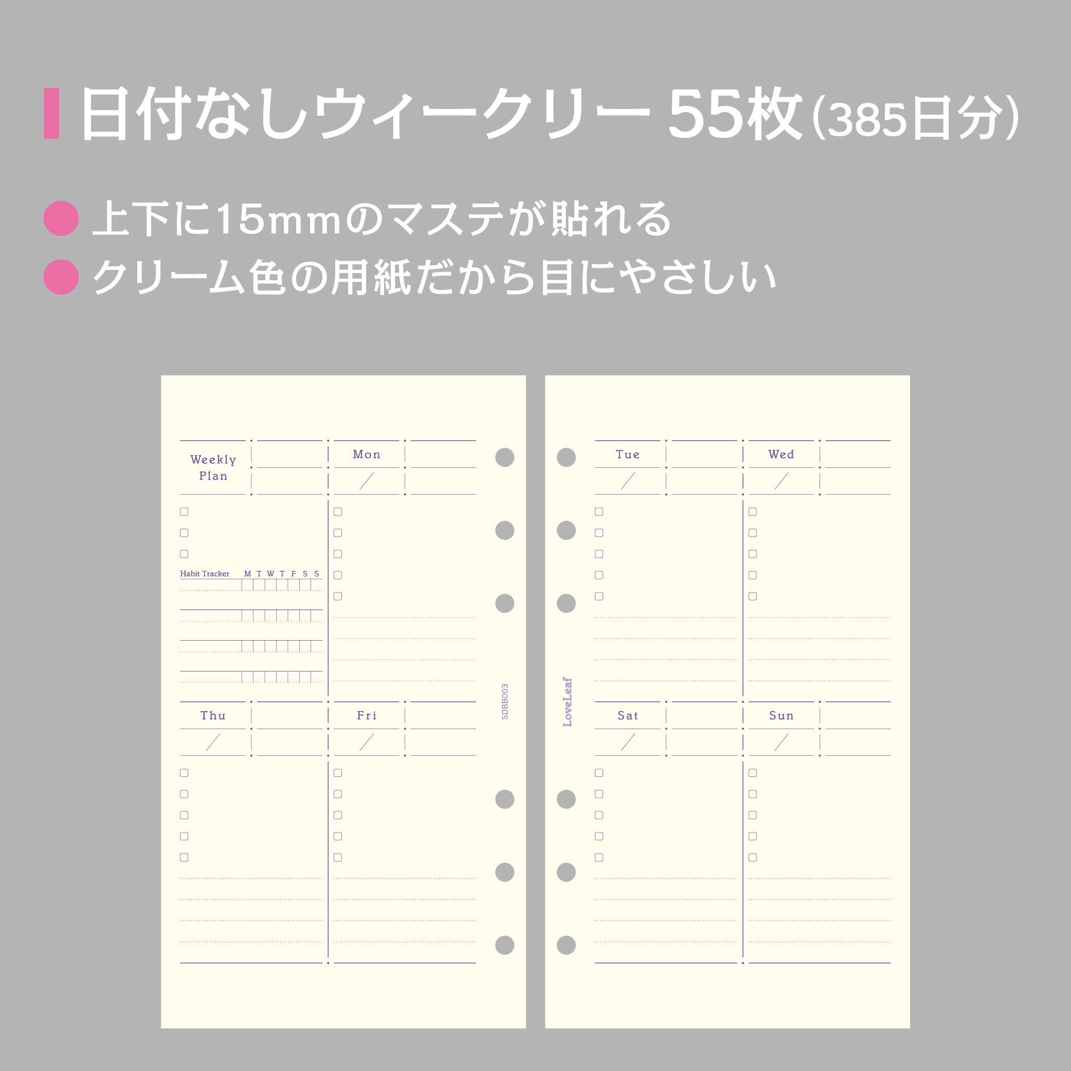 ラブリーフ システム手帳 リフィル バイブル ウィークリー 日付なし 見開き1週間 ブロック式 習慣トラッカー 55枚 6穴 SDBB003