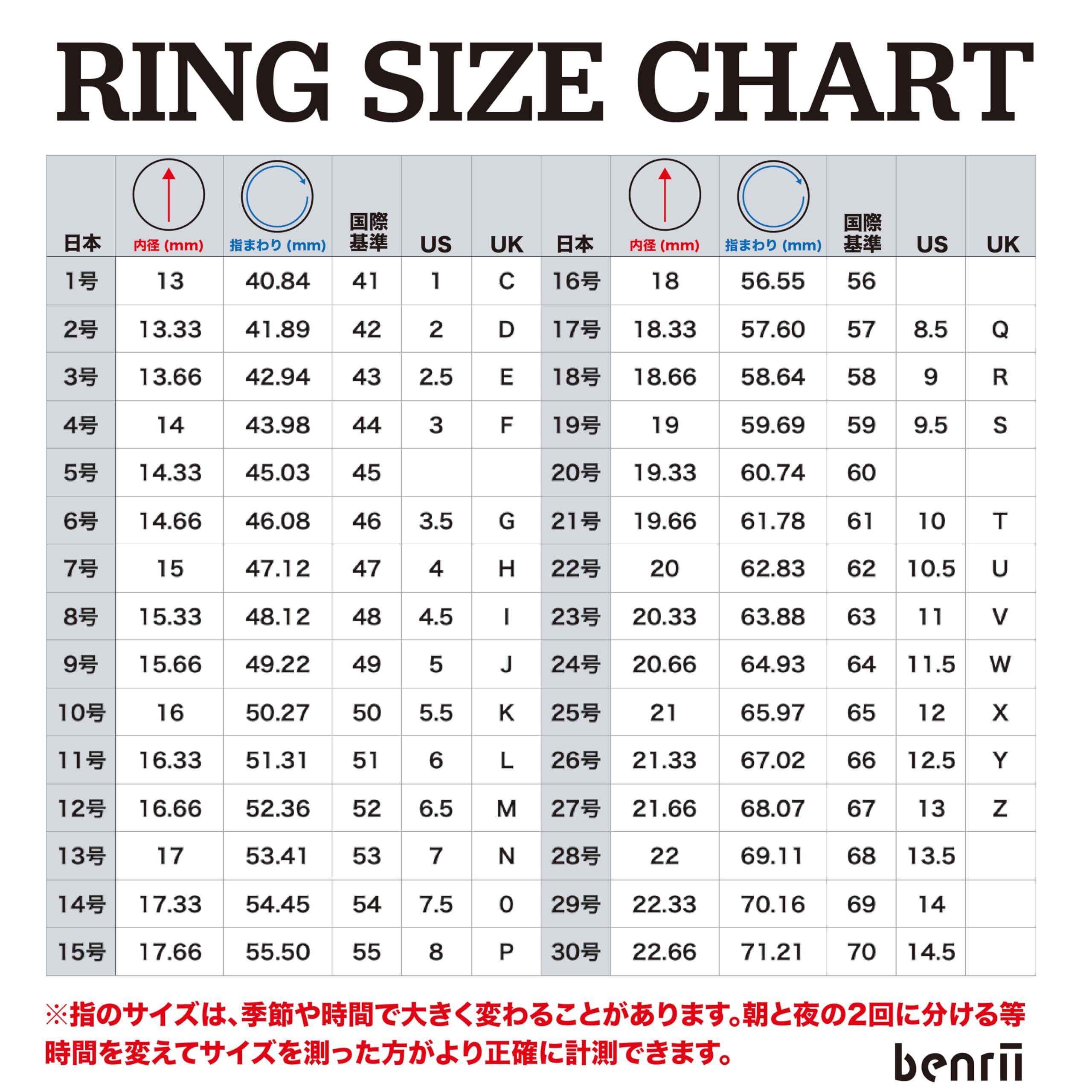 【簡単に測れる】指に巻き付けてサイズを調整するだけの簡単操作で、初めての方でも安心して使用できます。 【商品詳細】1~29号リングゲージバンド1本、1~30号ルーペ付きリングゲージバンド1本 の計2本セットです。 【素材と耐久性】benrii リングゲージバンドはプラスチック製で軽量ながら、耐久性にも優れています。繰り返し使用できるため、長期間にわたって利用可能です。 【衛生的】benrii リングゲージバンドは洗浄が可能な素材を使用しているため、清潔に保つことができます。 【安心の国内企業】benriiは安心安全の国内企業。1年間の付き!