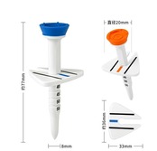サイズ:縦75mm 素 材:樹脂ABS+シリコン 重 量:6.6g 機 能:5段階の高さ調整可能(55mm 50mm 45mm 40mm 35mm)/ アライメント 打ち出し方向のイメージが湧きやすい。 ラウンドも練習場の感覚で打てる。 新感覚ゴルフティー。 プレゼントやコンペの景品にも最適です