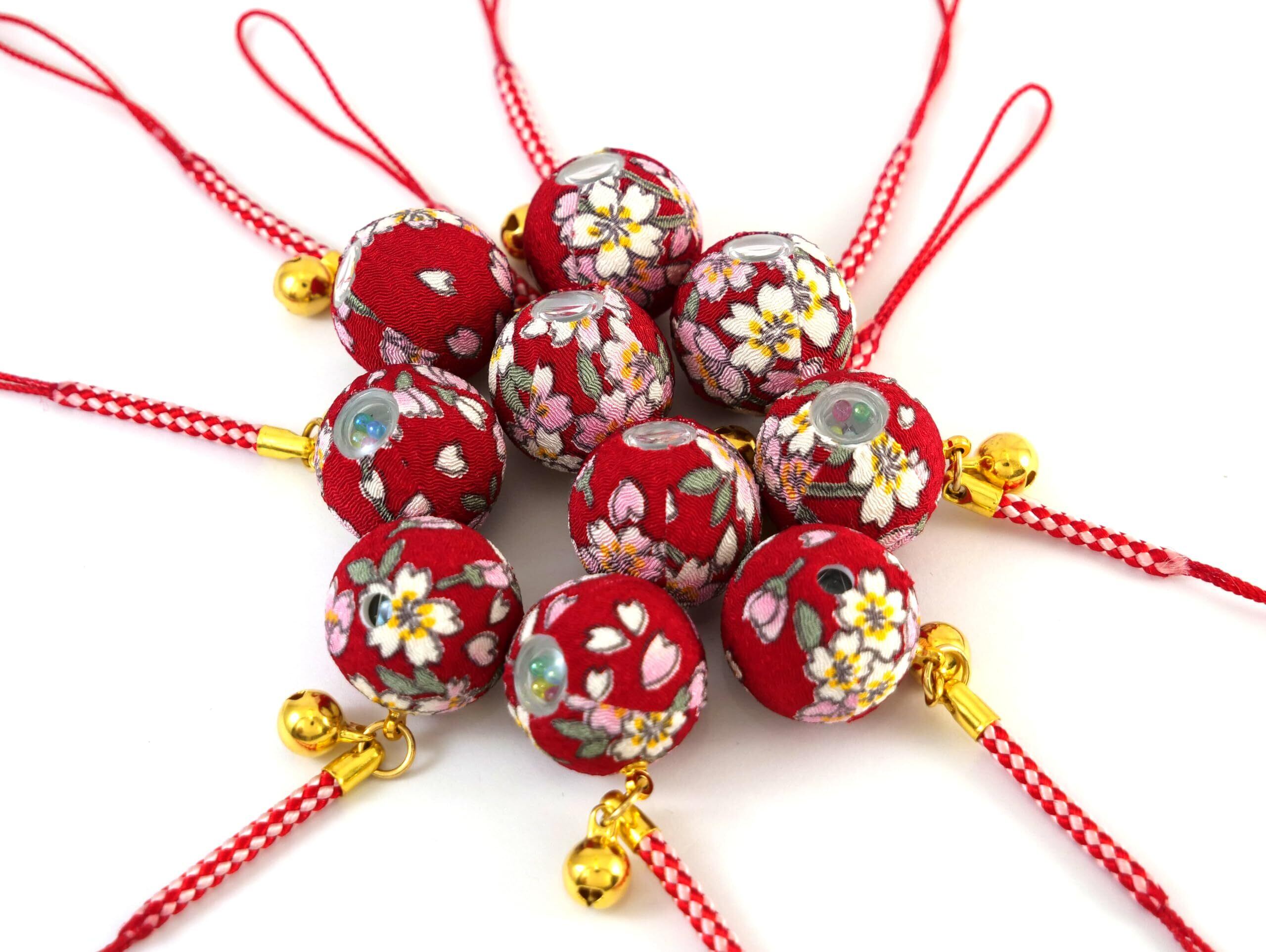 美しい和柄の布で包んだ小さな万華鏡のチャーム。万華鏡(球体)の穴をのぞけばカラフルなガラス玉が光に反射して癒されます!!※球体を動かしたり、コツコツ叩くとガラス玉が動いてより綺麗です。万華鏡は球体(直径25㎜)で、鈴付きなのでお家の鍵やお財布にもピッタリ! 球体をしぼが特徴のちりめん(縮緬)生地で包みました。和柄が醸しだすエレガント&キュートな装いと、ちりめん生地独特の風合いが楽しめます。 世界中で愛される和柄のちりめん生地を使用した小さな万華鏡は日本で作られたもので、海外の人へのお土産・プレゼントにも最適。 職人による手作りのため品質には多少の違いがあります。また、図柄のパターンは商品ごとに異なりますので、ご了承願います。