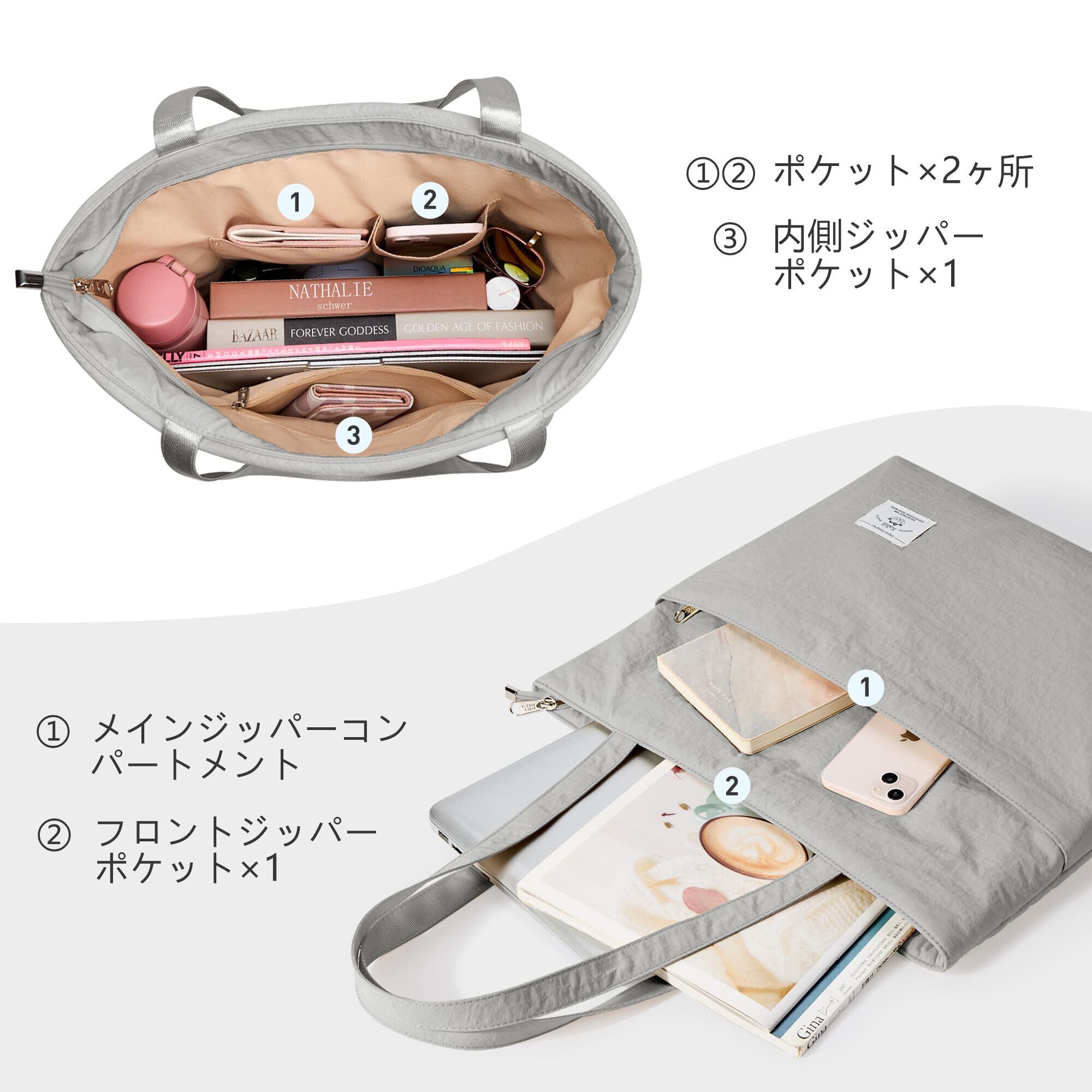 【高耐久&スタイリッシュ】0.6ポンド(約270g)のトートバッグ 軽量設計ながら、防水バッグ(ナイロンバッグ)素材で強度抜群。プリーツ加工が施された洗練デザイン(レディーストートバッグ)で汚れにも強く、バッグ レディースに最適。