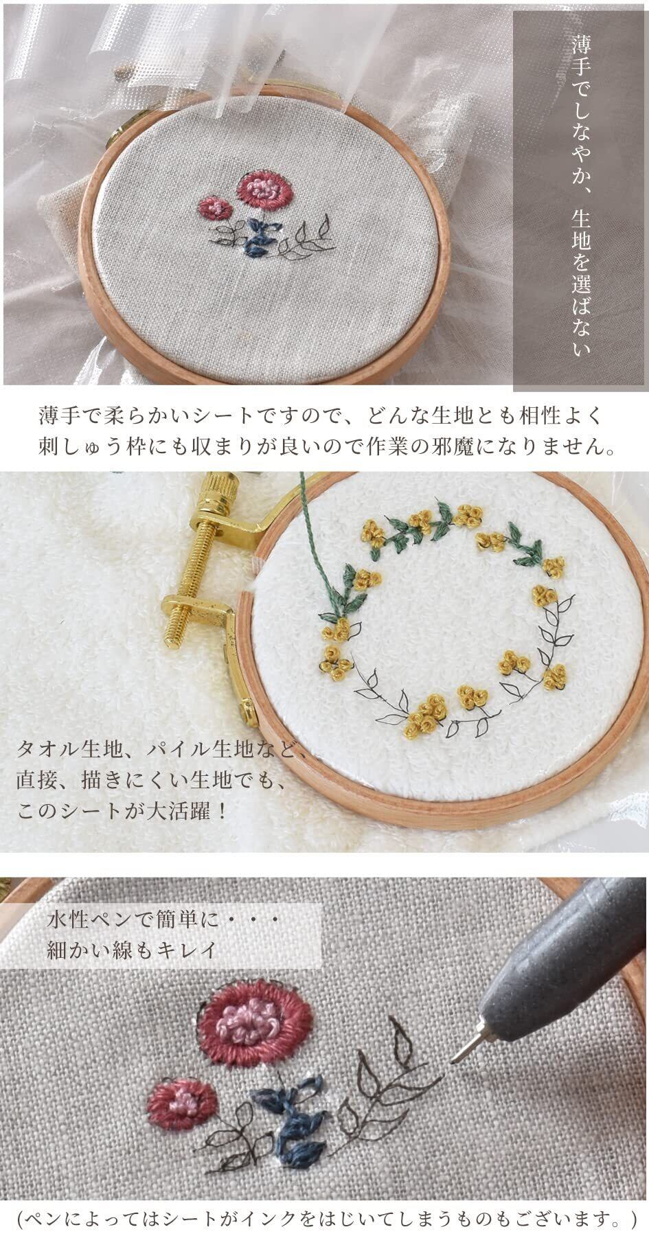水性ペンで紙に書くような感覚で使える。刺繍の図案を写す作業がラクラクはかどる魔法のシートです。
