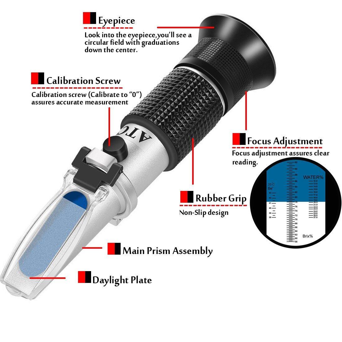 蜂蜜屈折計, C-Timvasion 温度自動補正 蜂蜜手持屈折計 3スケール(38-43ボーメ度、58-92%糖度、12-27%水分) 養蜂 蜂蜜品質専用測定