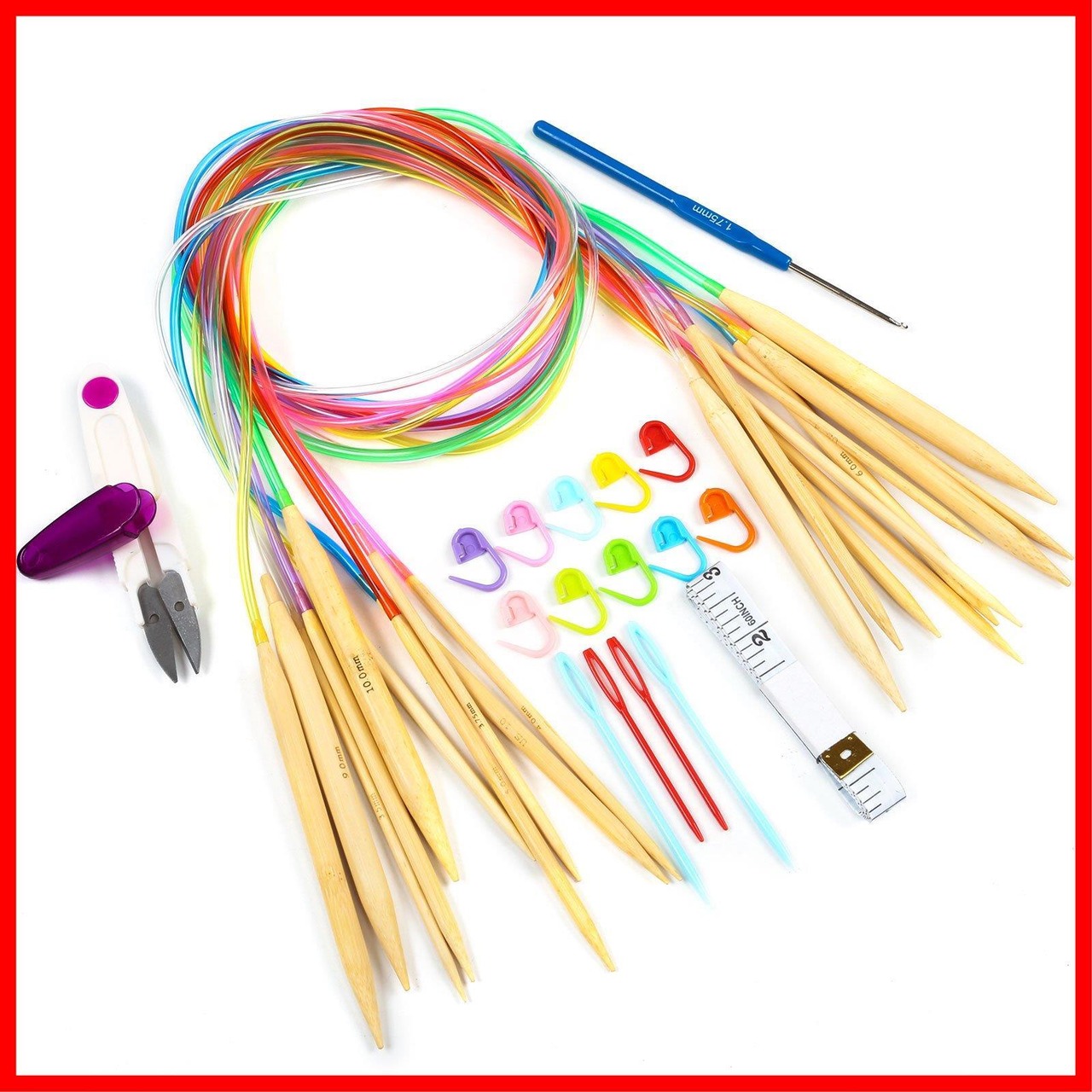 LIHAO 輪針 27点セット 10サイズ 3.5㎜から10㎜まで 約98㎝ 棒針 手編み道具 段数マーカー とじ針 レス針 ハサミ付き