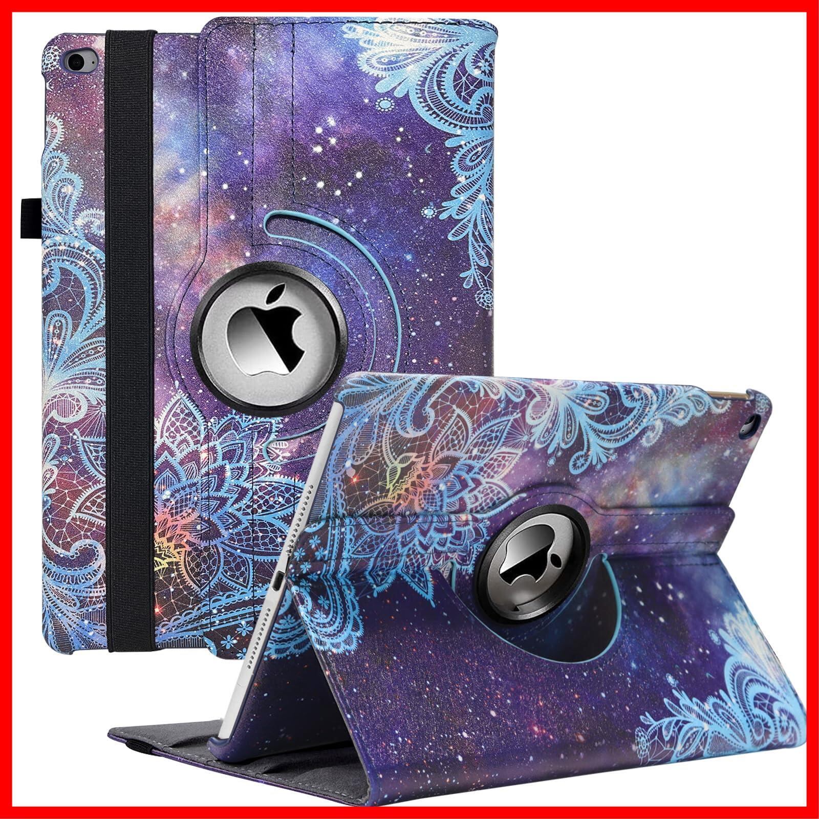 iPad 9.7 2018/2017ケース 新型(Newモデル)/iPad Air/Air2カバー iPad 9.7インチ(第6、5世代)軽量 手帳型 360度回転スタンド オートスリープ機能 3段階調節可能 固定バンド 脱落防止耐衝撃 耐久性 おしゃれデニム生地 (星空花です)
