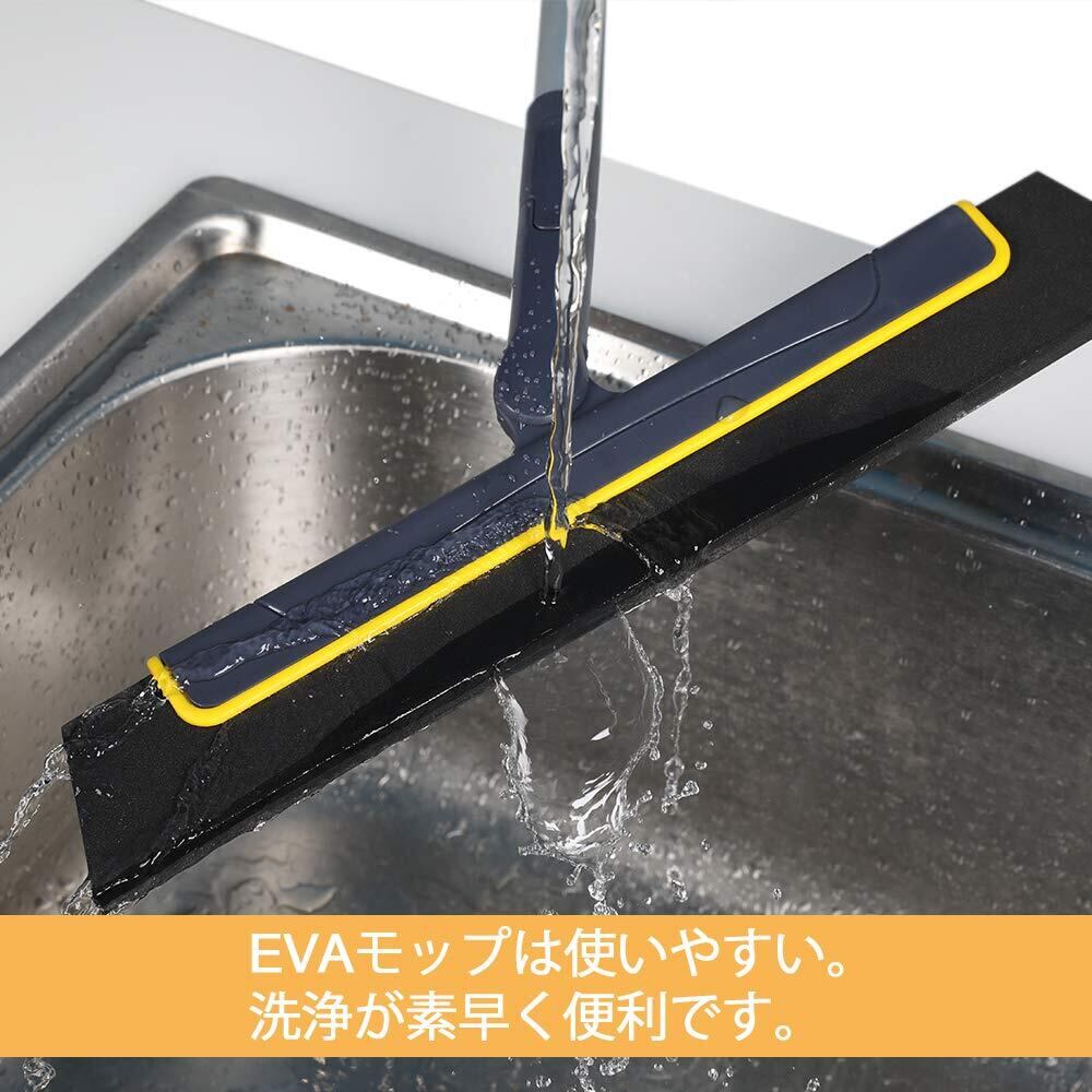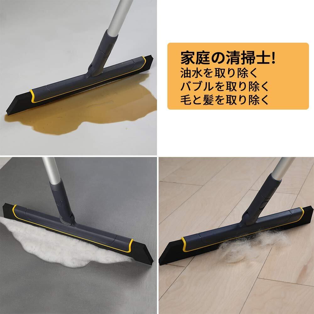 【柔軟なEVA発泡ゴムワイパー】水切りワイパーのヘッド部分は発泡ゴムので、埃、髪、水などのゴミが綺麗に取り除くことができます。地面に傷を付けずに掃除できます。