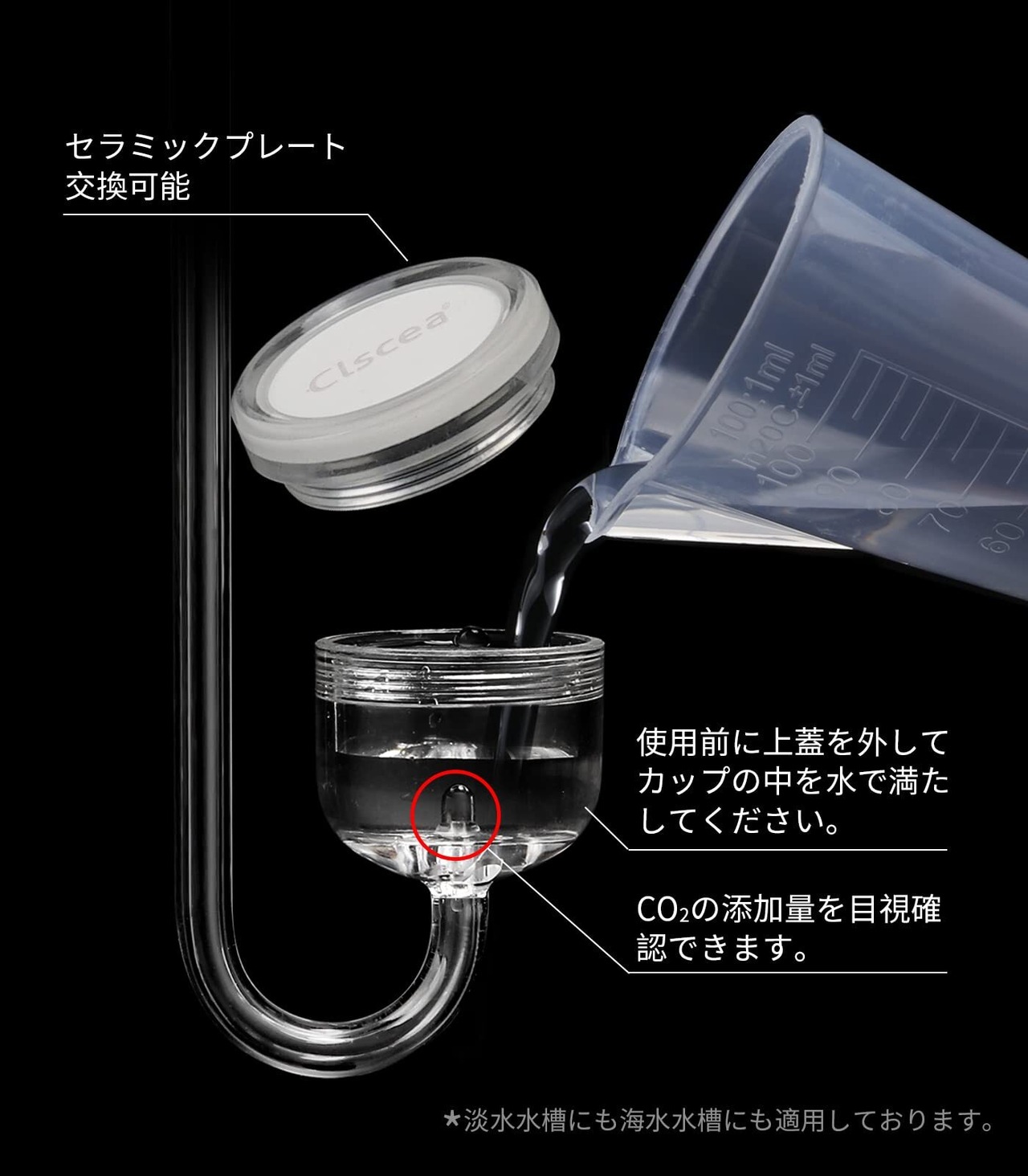 本製品はCO2専用。 エアーポンプ不可。拡散プレートを事前には数時間で水に浸してください。効果が良くになります。