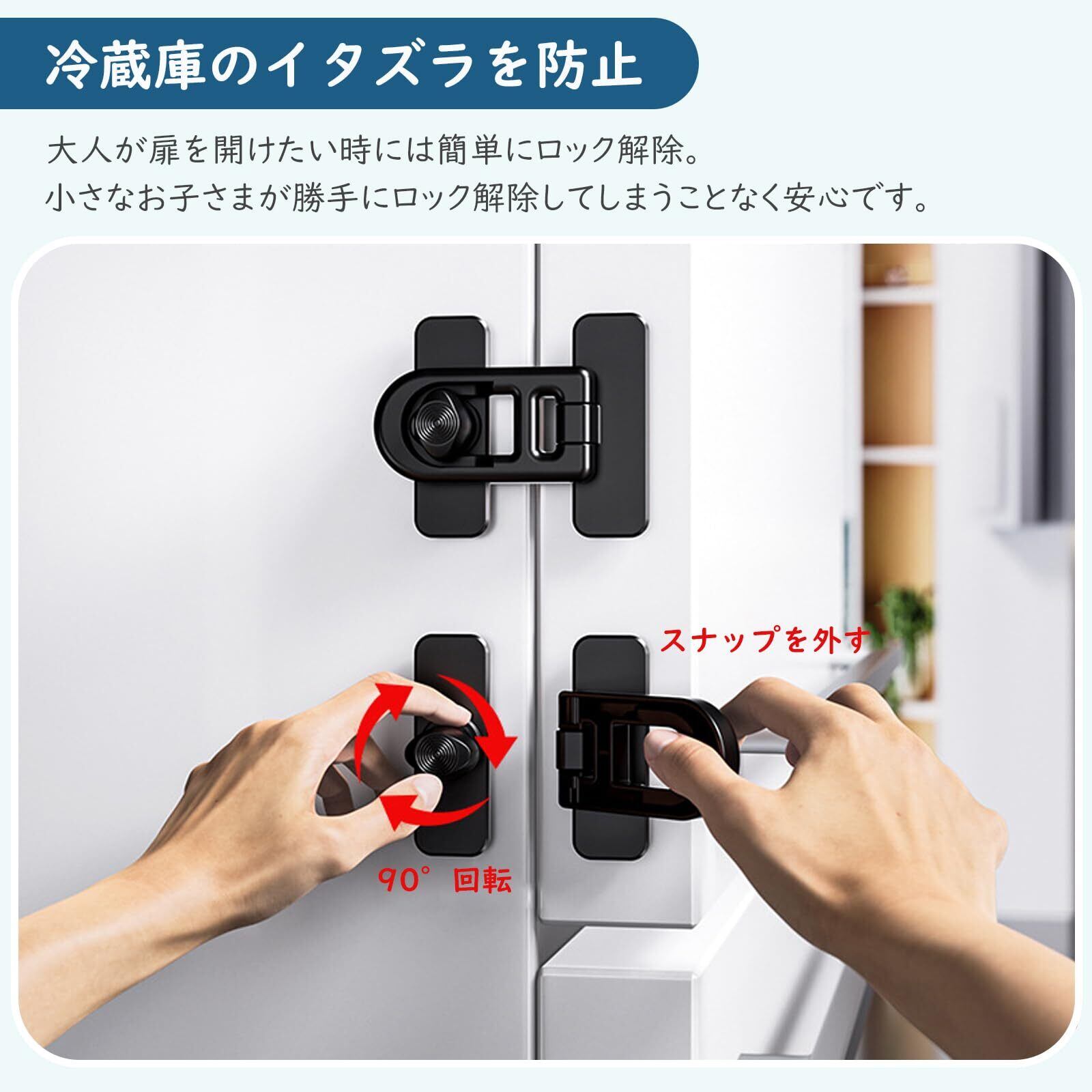 ZEWZE チャイルドロック 冷蔵庫ロック 2個セット地震対策 穴あけ不要 設置簡単 ベビーガード こども 安全対策 ストッパー ドアロック いたずら防止 引き出し/冷蔵庫/オーブン/戸棚/ドア/キャビネット/扉/窓などに適用 (ブラック) | ニコニコshops