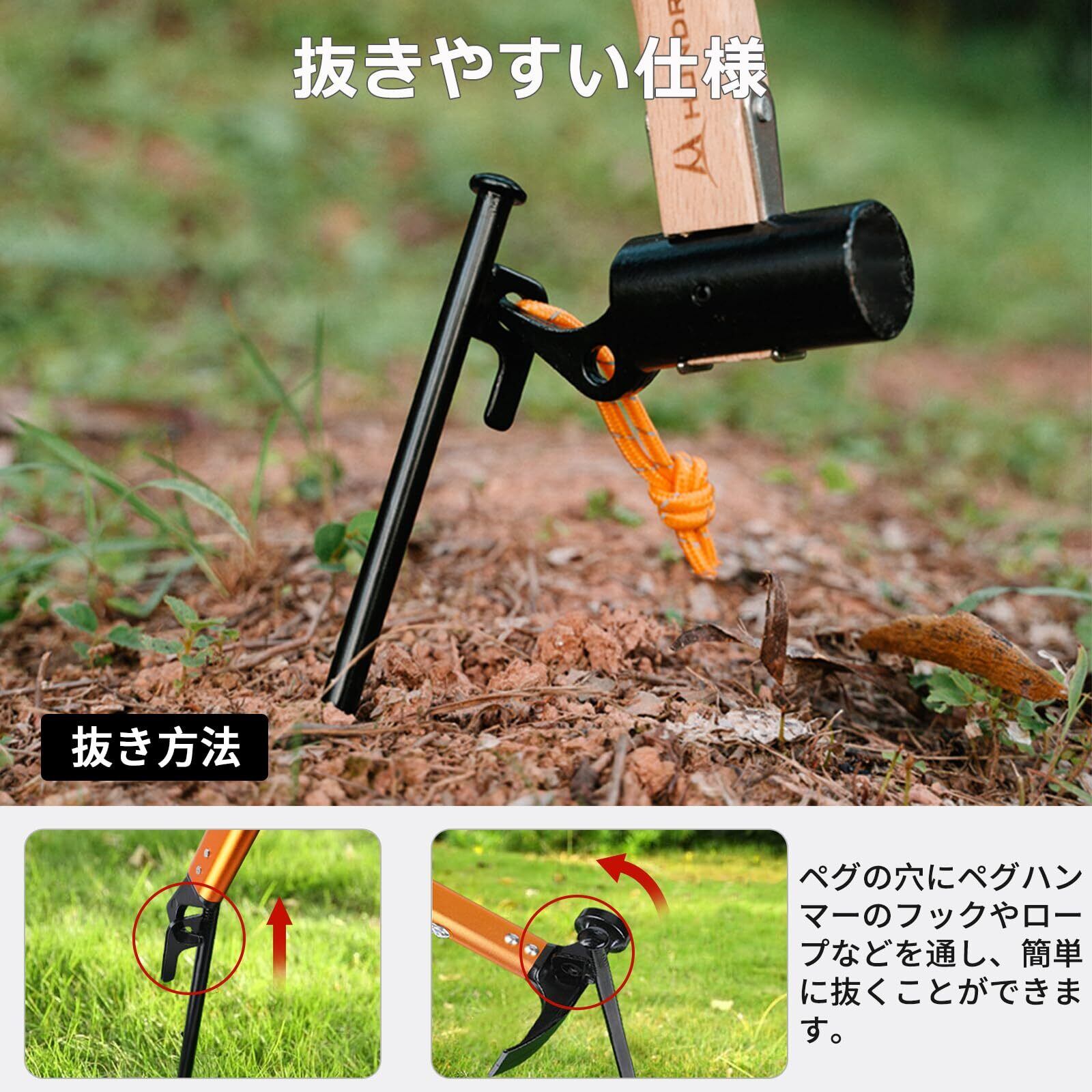 ◆【丈夫な材質】:高炭素鋼製のテントペグが16本付き、頑丈で折れにくい。砂利や石が混じった固い地面でも入り込みが良く、ガッチリと固定します。ペグ表面は黒電着塗装処理を施すことにより、高い防サビ性と耐久性を兼ね揃えております。