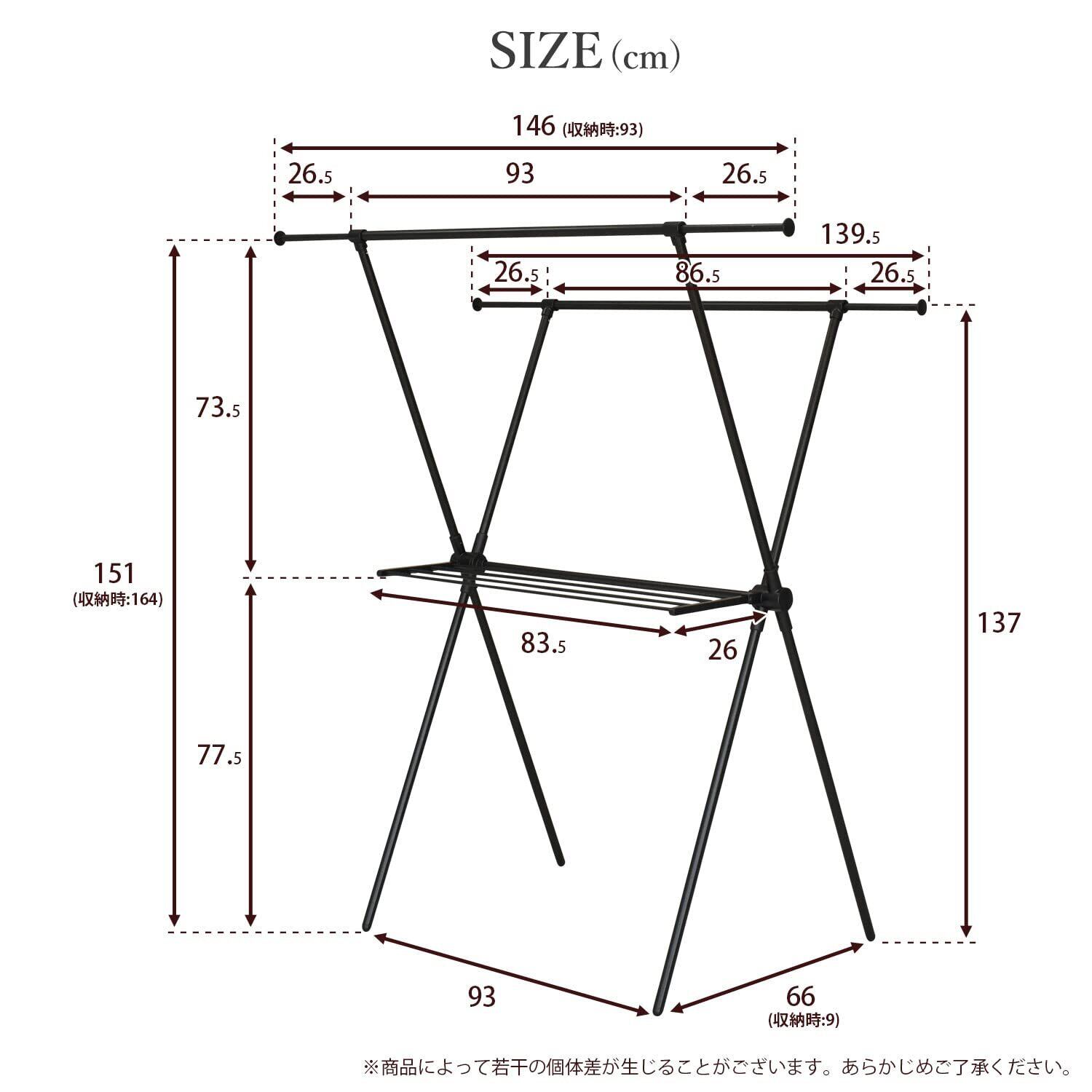 ekans(エカンズ) 室内物干し X型 (ブラック, レギュラーサイズ)