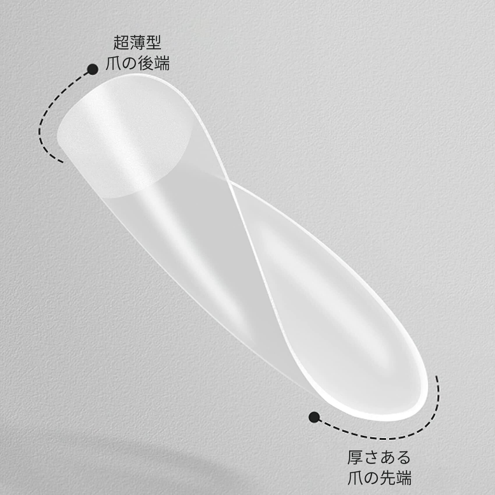 高品質:クリアネイルチップは耐衝撃性・靭性に優れるABS樹脂を採用し、柔軟性が高く、折り目がありません。チップが薄いので付け心地も抜群、軽くて薄くて後端部分、ナチュラルなラジアンでグルー漏れにくいです。