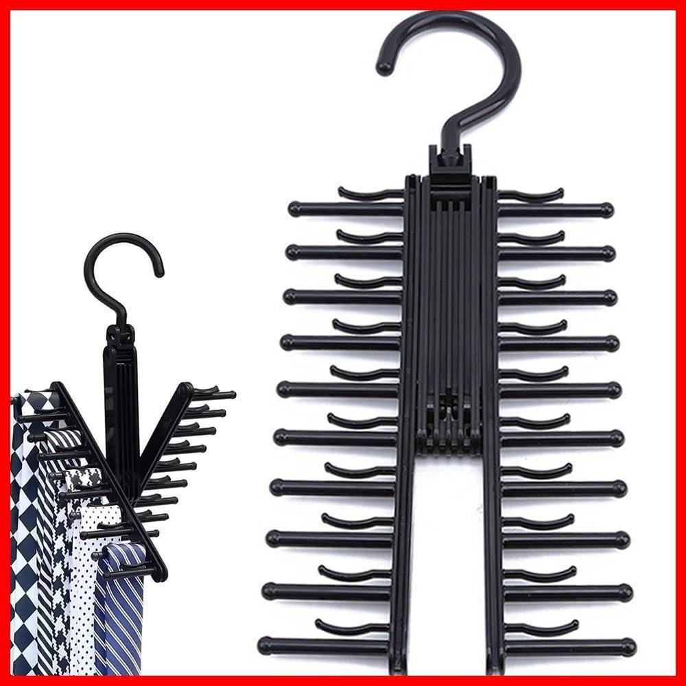 ネクタイハンガー ネクタイ収納 20本掛け 滑り止め付きタイホルダー ベルトハンガー 多機能収納 クロス機能 360度回転 (1本入ブラック)