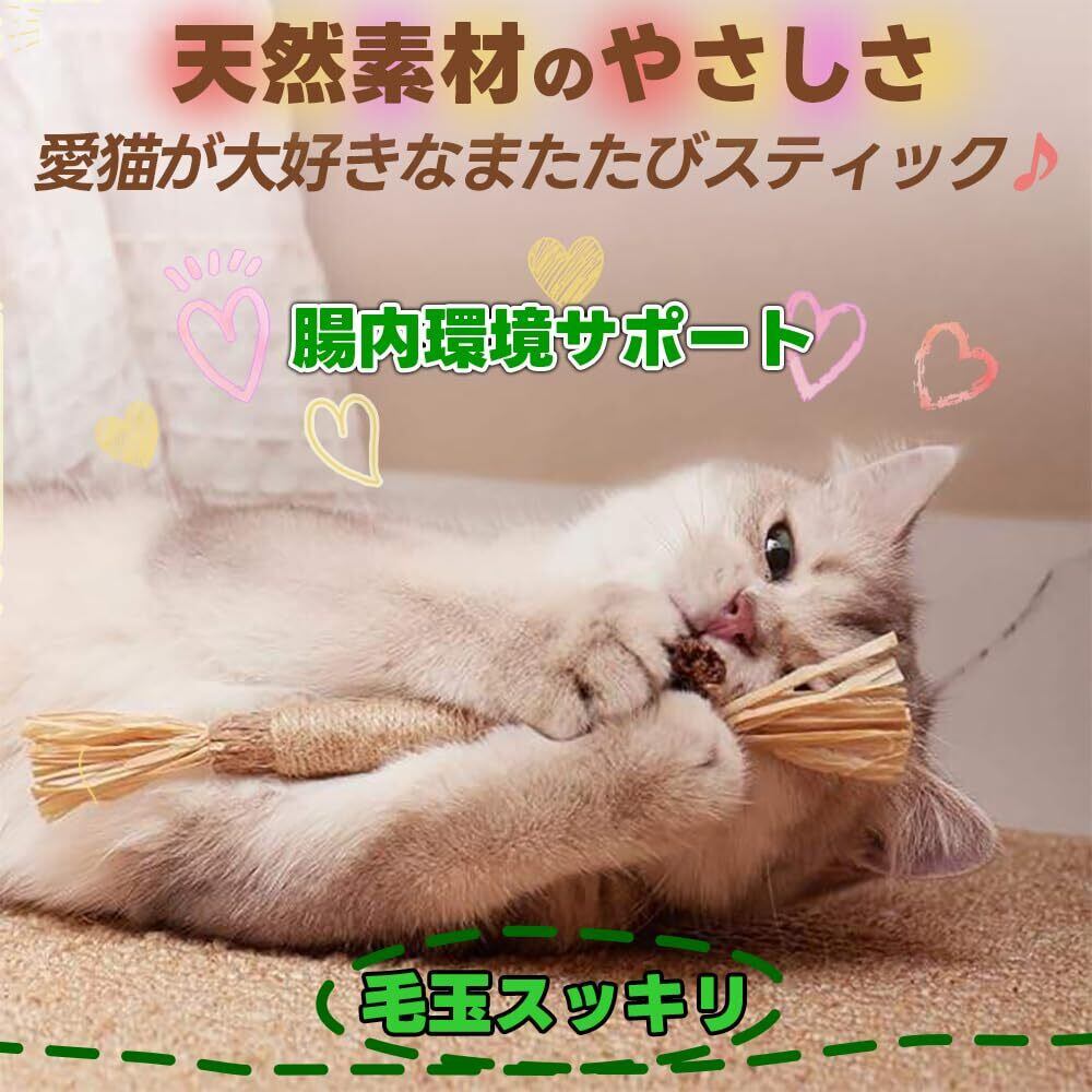 【「またたび」の自然な香りでリラックス】愛猫が思わず夢中になる、自然素材を使用した安心のまたたびスティック。噛むことでストレスを解消します。