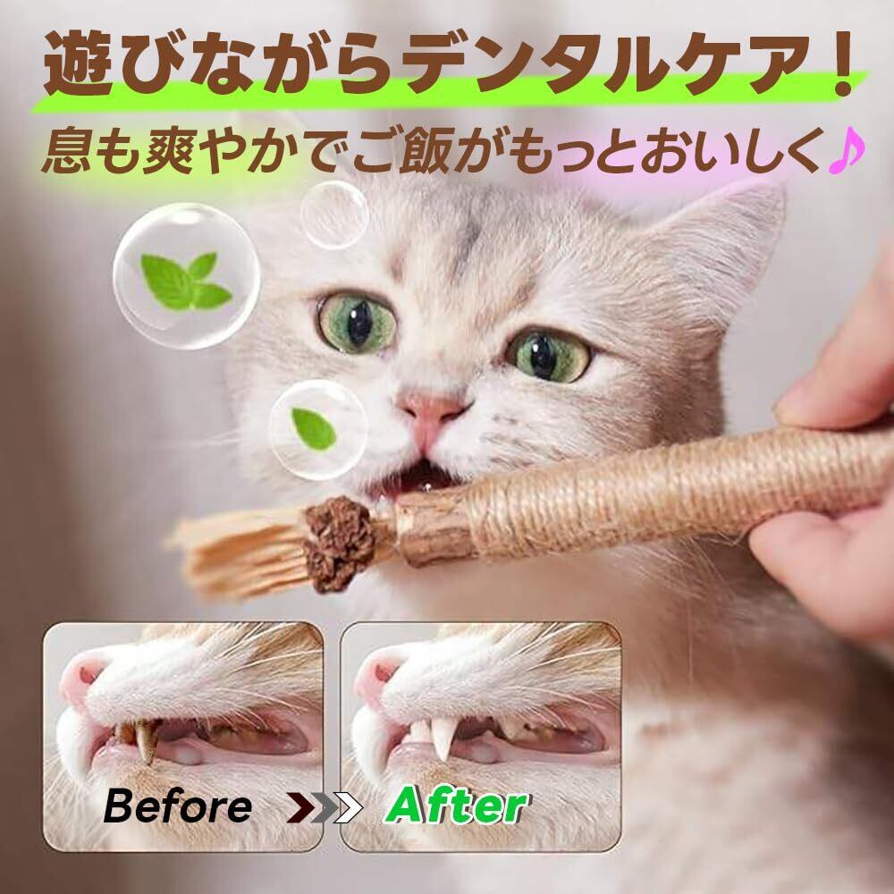 猫 噛むおもちゃ 歯磨き またたびの木 猫歯ぎしり棒 マタタビ 天然木 歯ぎしり 棒 歯石ケア 口臭ケア 歯磨きおもちゃ ストレス解消 (3本セット)