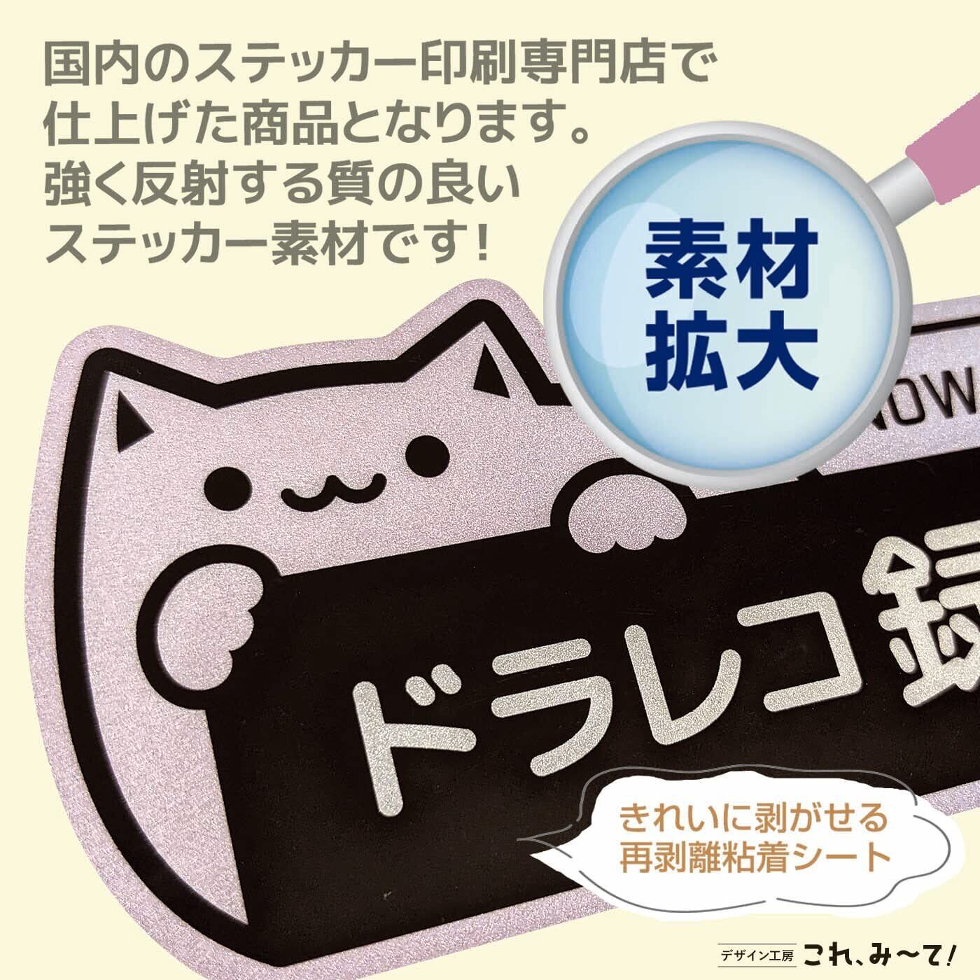 【反射】ステッカー ドラレコ搭載車 14×5cm ドライブレコーダー 録画中 あおり運転 猫 (反射 ピンク紫)