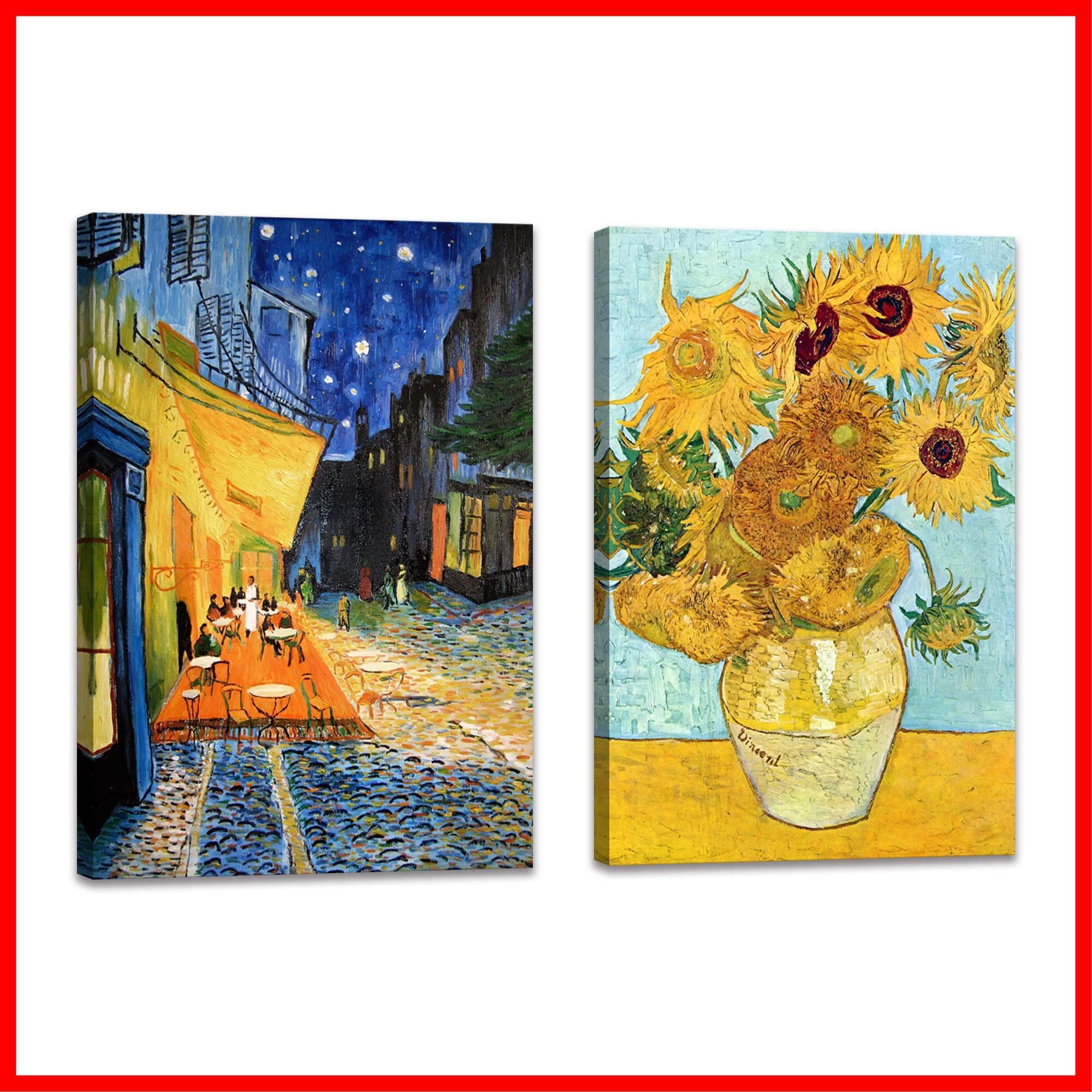 2枚 アート ポスター ゴッホ ひまわり 絵画 パネル 夜のカフェテラス 壁掛け絵画 複製画 抽象 油絵 インテリア装飾 新築 開店 開業/結婚祝い プレゼント (30x40cmx2Pcs) | ニコニコshops