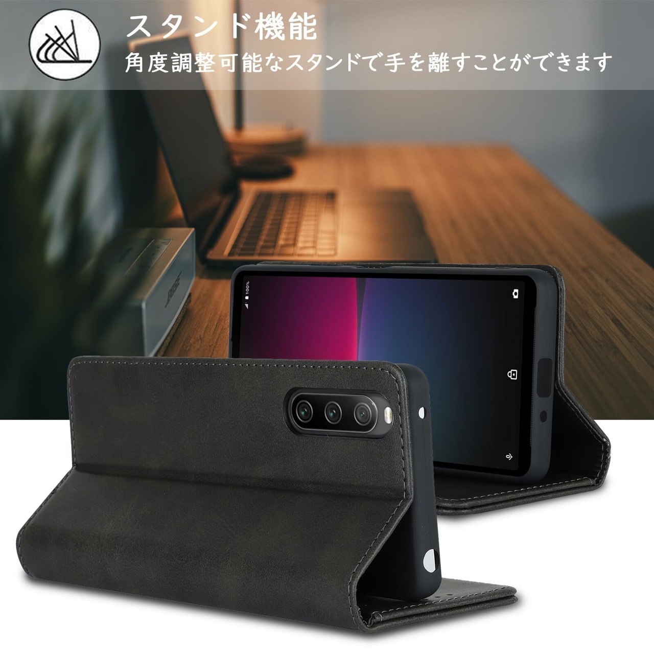 【Hamany】 xperia 10 v ケース 手帳型 エクスペリア10 v ケース カード収納 携帯カバー ソニー xperia SO-52D / SOG11 スマホケース 財布型 耐衝撃 耐摩擦 耐久性 横置きスタンド機能 マグネット式 レザー カバー -紳士黒 | ニコニコshops