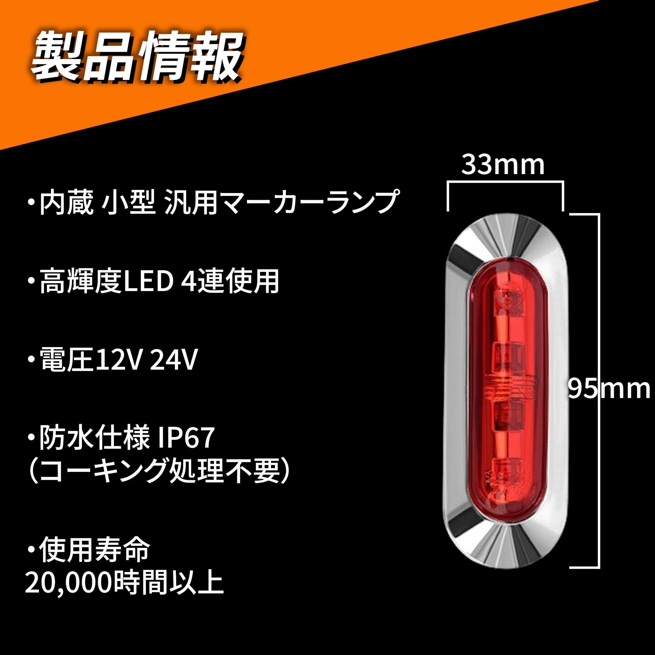 商品仕様 : サイズ:(約)高さ95×幅33mm 電圧:12V 24V 防水仕様:IP67 使用寿命:20,000時間以上