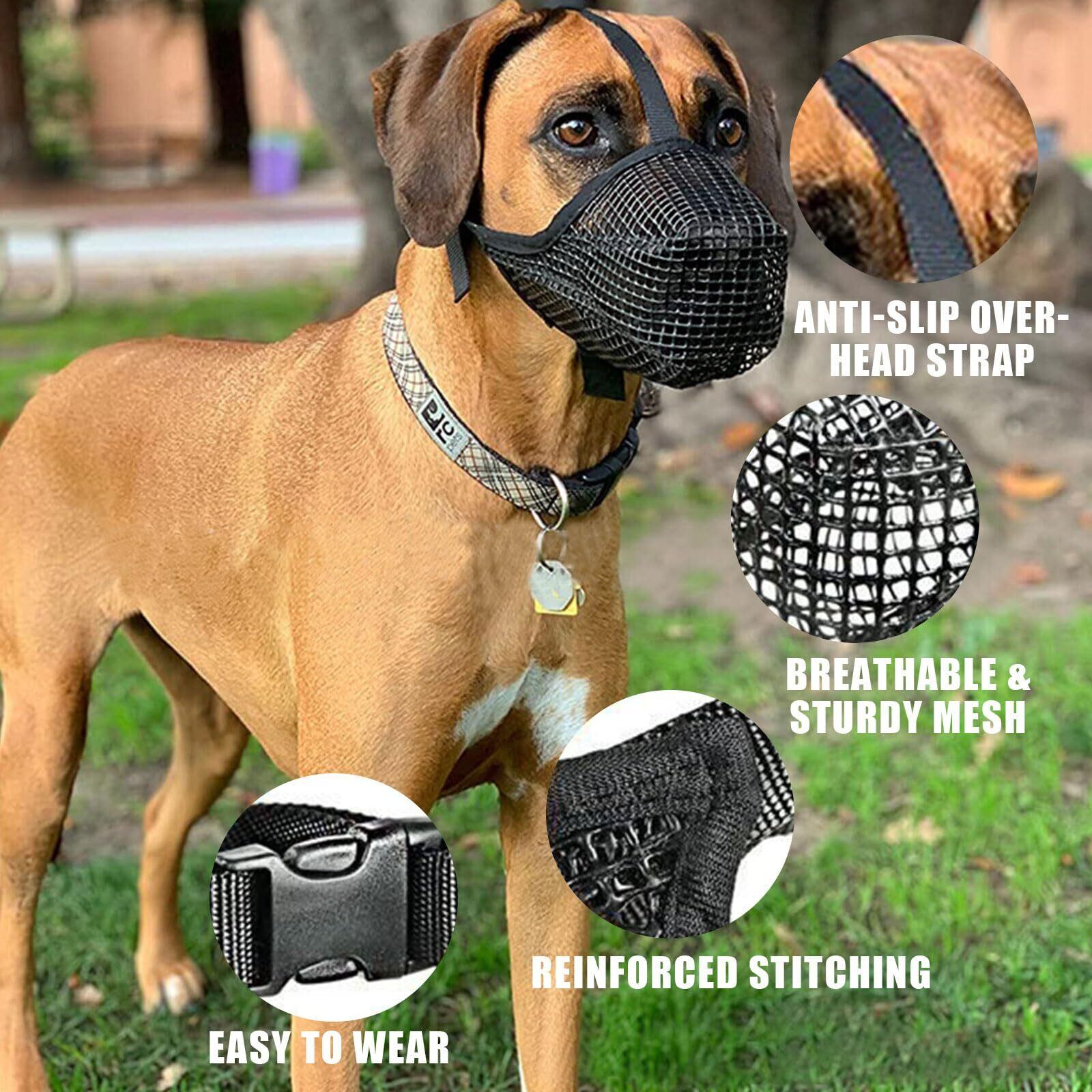 犬 口輪 犬用マズル 通気 メッシュ 無駄吠え防止 噛み付き防止 家具噛み防止 拾い食い防止 傷舐め防止 犬用口輪 小型犬 中型犬 大型犬用 マウスカバー ペットグッズ (ブラック, XL)