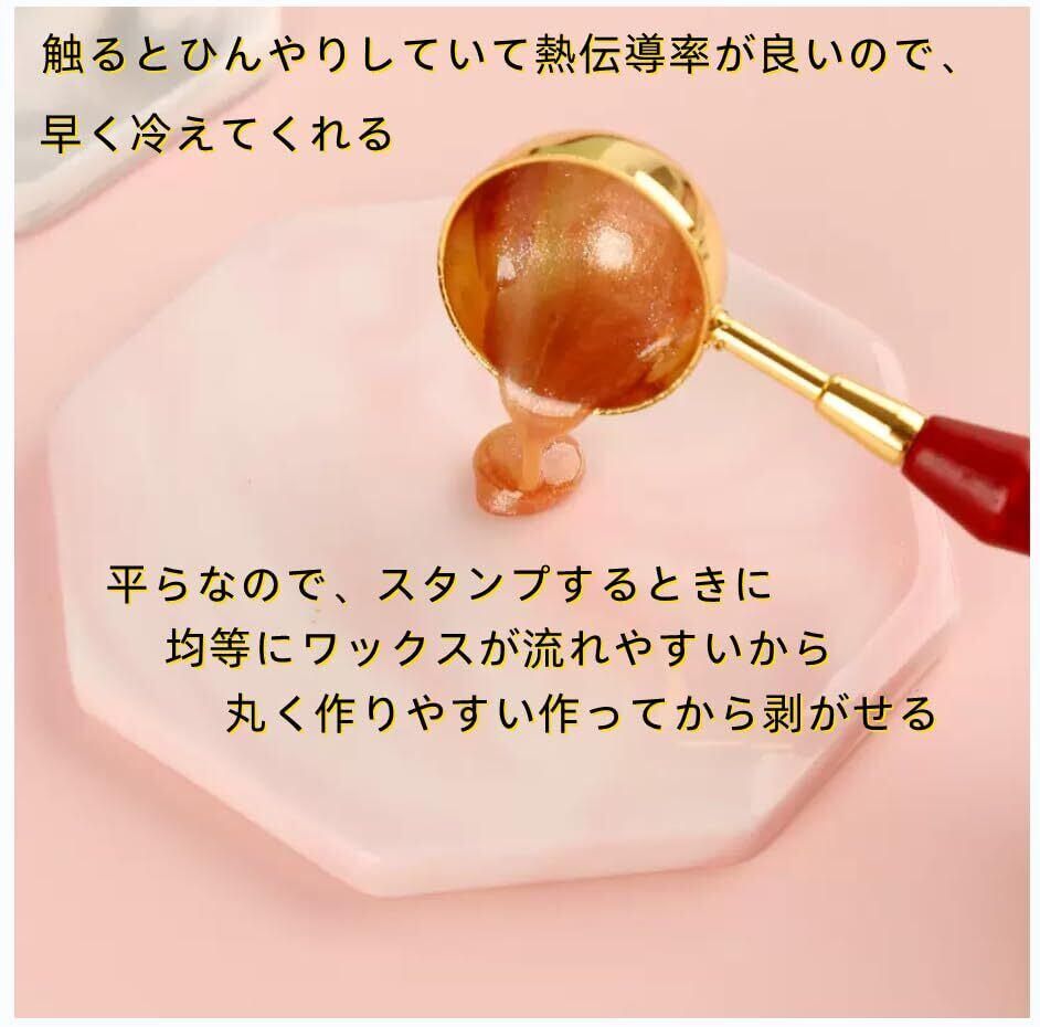 【シーリングスタンプ台 - 使用簡単】平らなので、スタンプするときに均等にワックスが流れやすいから、丸く作りやすい作ってから剥がせる。