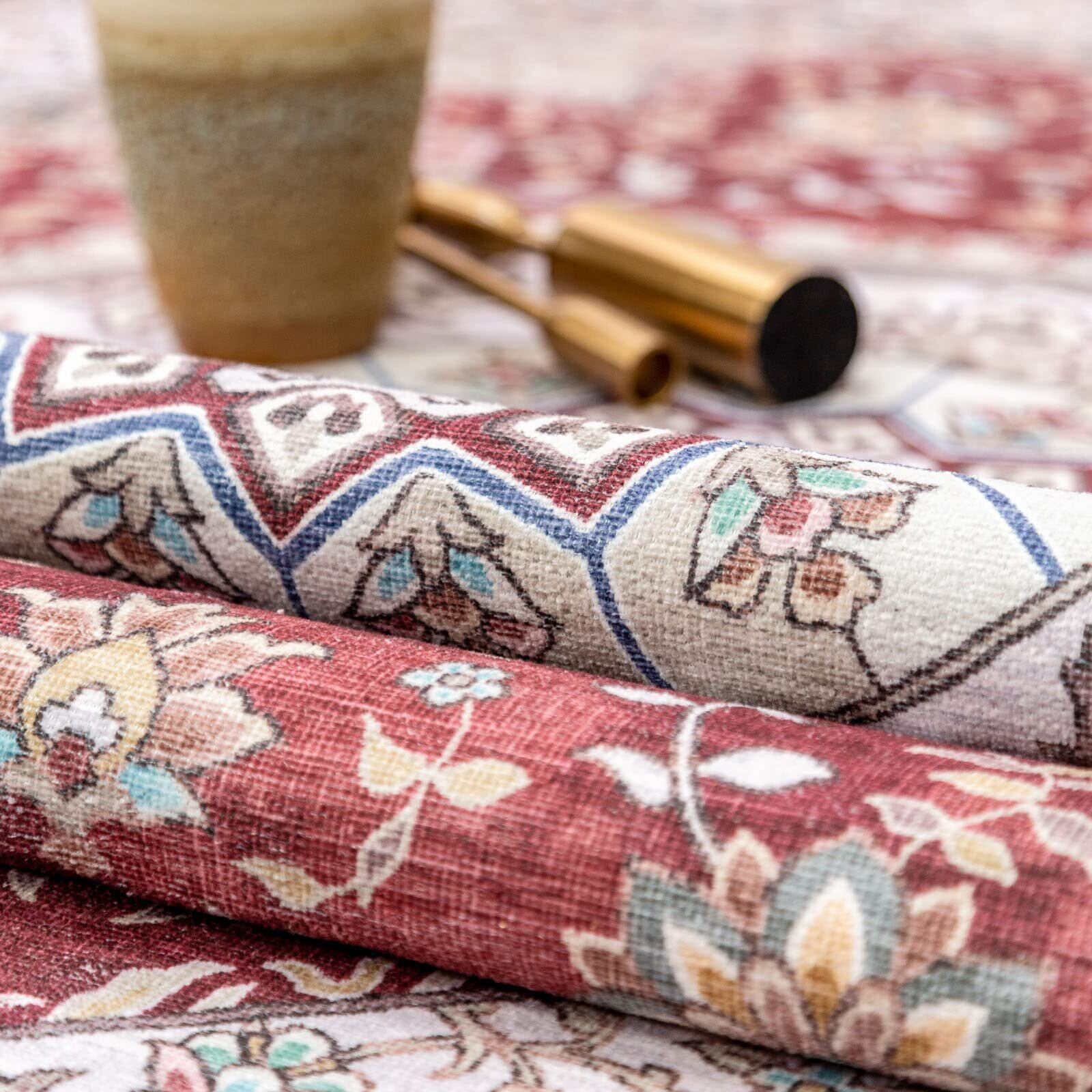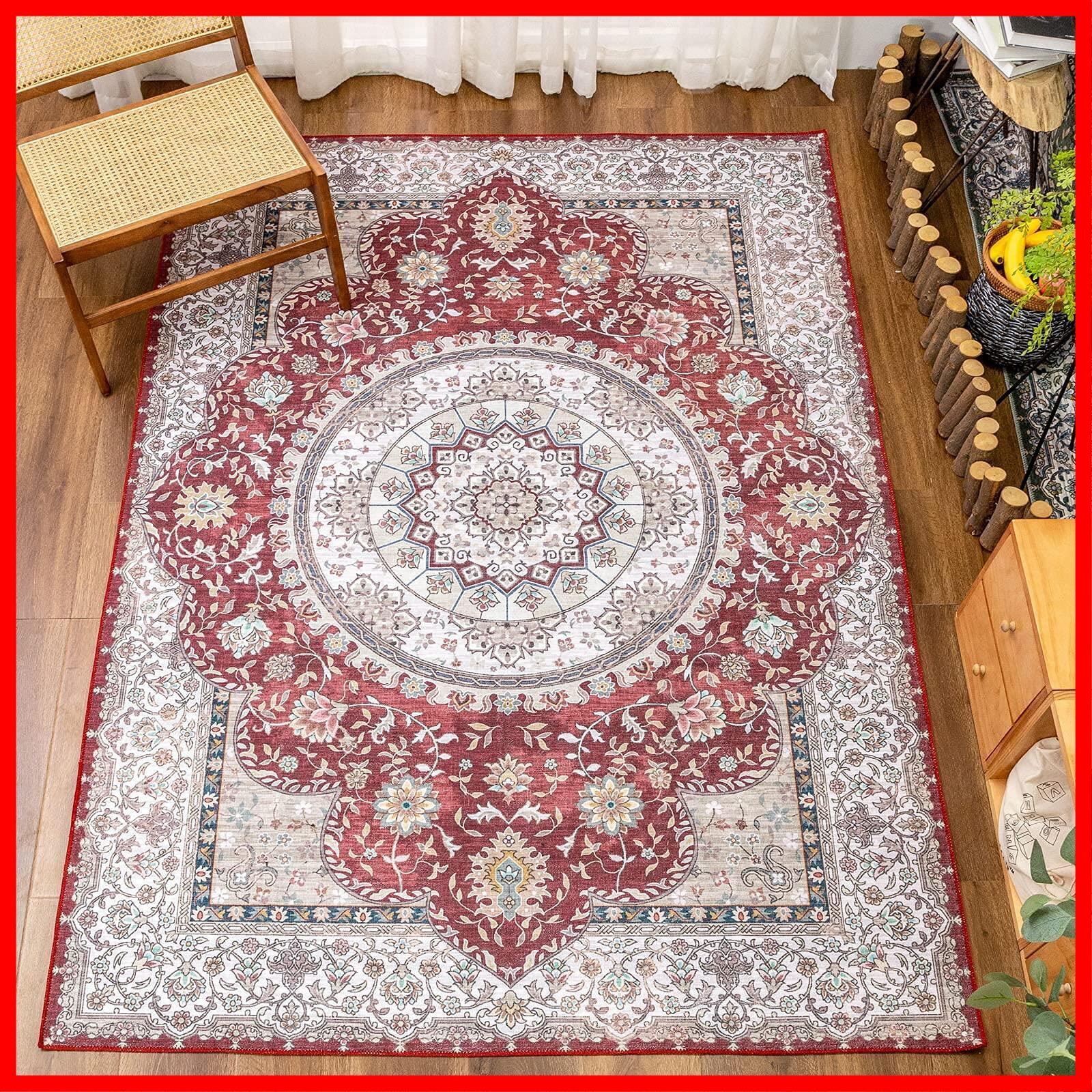 DECOMALL カーペット 3畳 ペルシャ 絨毯風 ラグ マット 160X230CM 花柄 洗える オールシーズン 滑り止め 防ダニ 防臭 レッド 床暖房対応