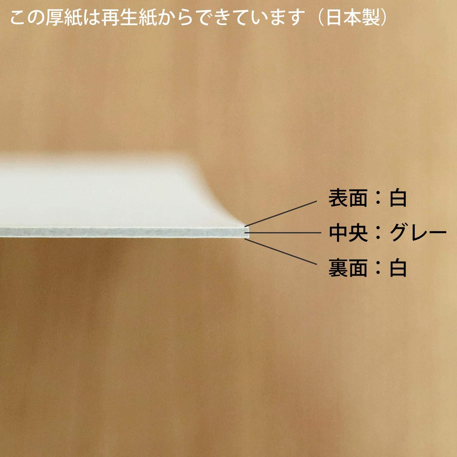 カルトナージュ・貼箱作り、製本や工作などにオススメ。郵便の書類保護用にもお使い頂けます。 ※機械で断裁しておりますが、紙の端面にバリが残る場合がございますので 予めご了承の上、ご注文くださいませ。 ※製造都合上、その都度「白色」の色味に違いが出る場合がございます。 ※紙は再生紙からできている為、表面に小さな黒点や白点が入る場合がございますが、不良品ではございません。