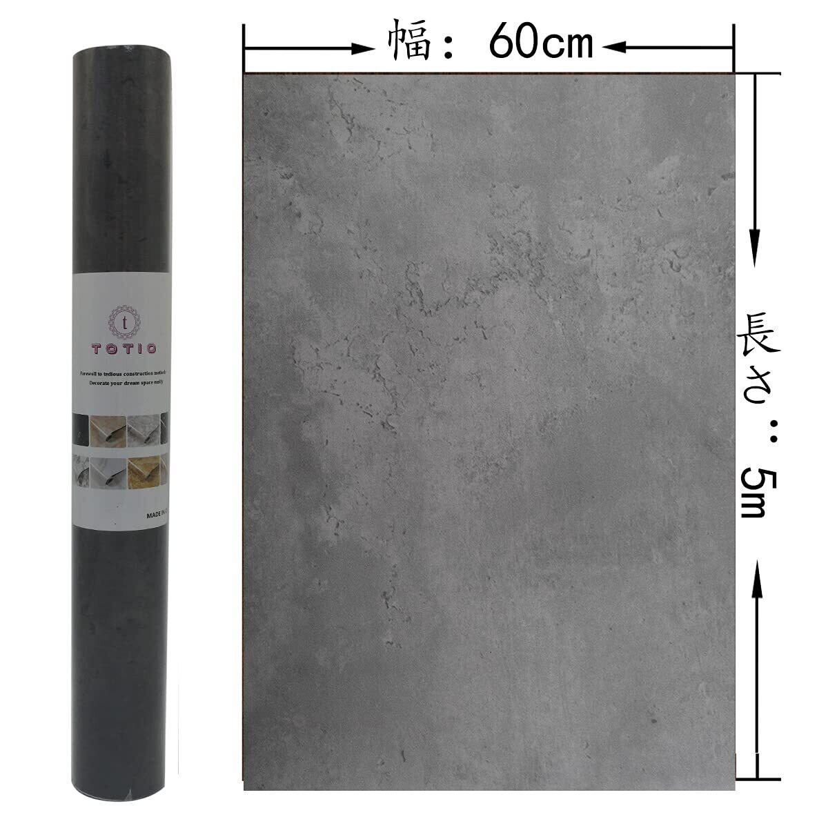 TOTIO 壁紙 コンクリート 打ちっぱなし カッティングシート グレー リメイクシート コンクリート風 壁紙シール はがせる おしゃれ 厚手 60CM × 5M 自粘着 防水 床シート ビニール壁紙 防油 防汚 キッチン シート 浴室 防水シール 装飾シート 壁 家具補修シール