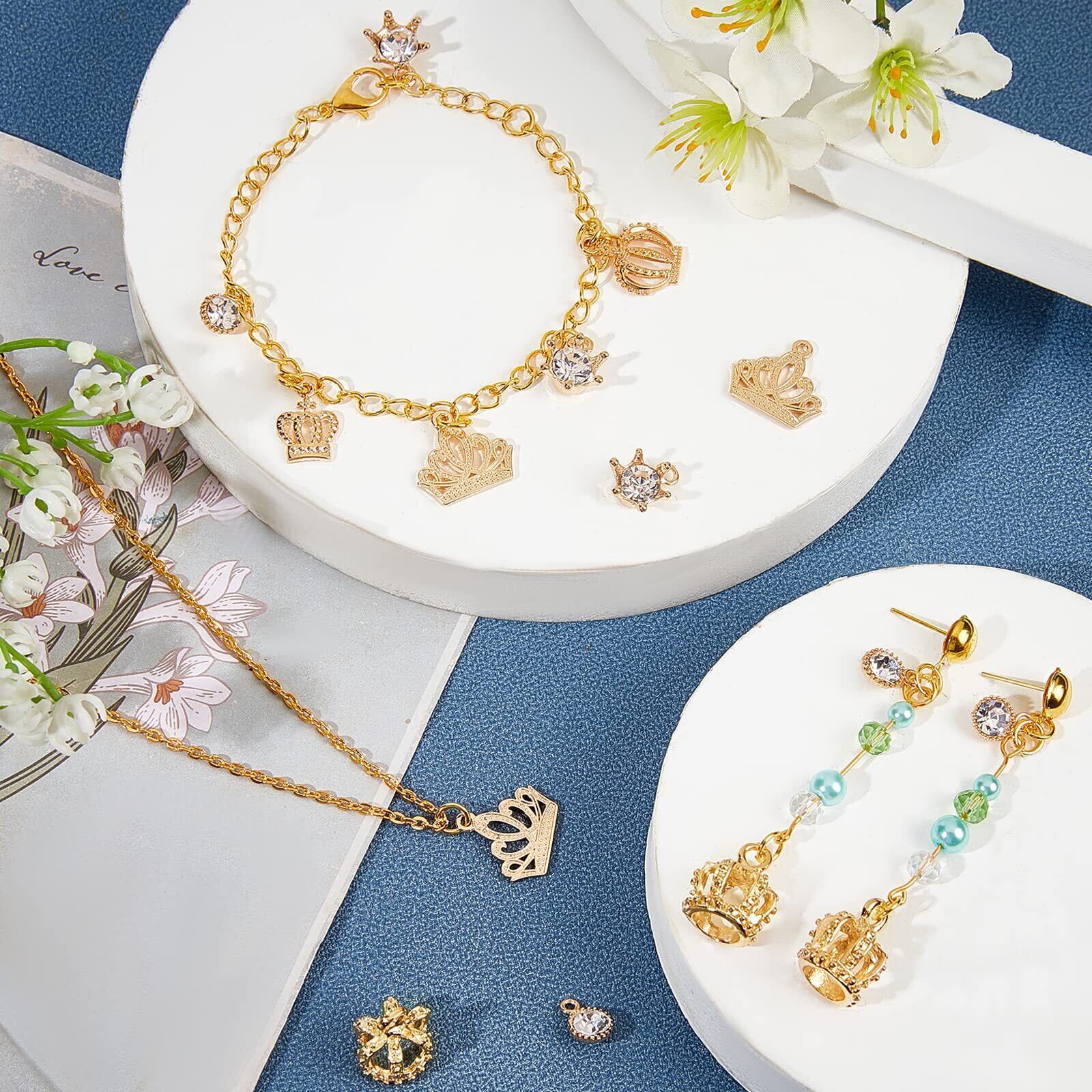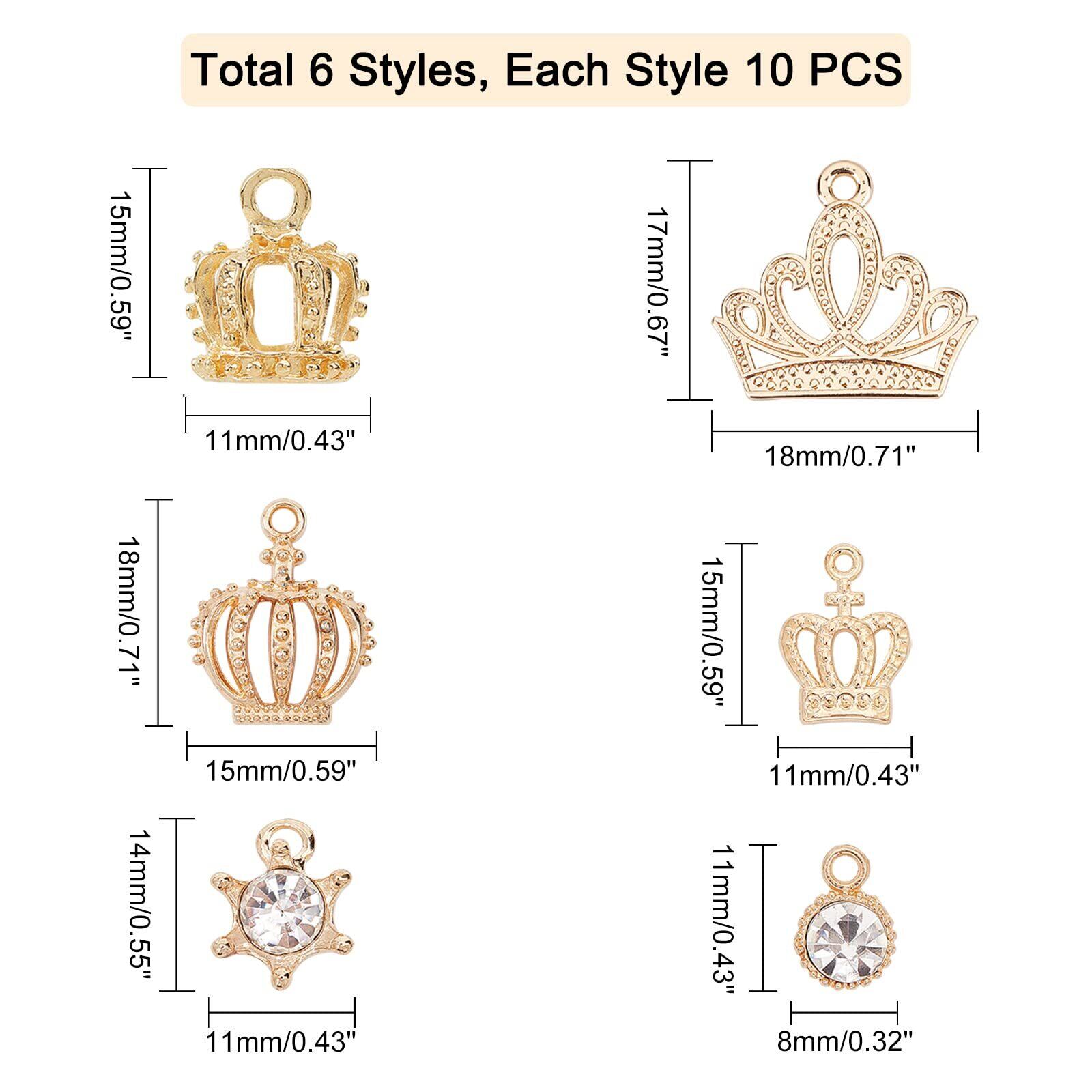 [PH PandaHall] クラウンチャーム 王冠チャーム 6種 60個 ラインストーン アクセサリーパーツ 手芸 DIY 手作り ピアス イヤリング ブレスレット ネックレス ハンドメイド材料 クラフト用品 収納ケース付き