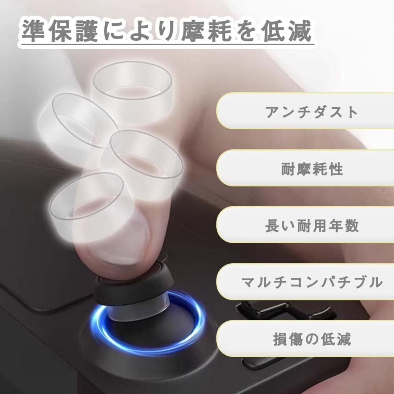スティックの摩耗軽減:操作時に磨耗しやすいスティックの軸部をカバーすることで、これにより、各種コントローラのスティック部分の摩耗や損傷を予防することが可能です。防塵キャップとしても機能し、端子の内部へのほこりの侵入や、接触不良、静電気によるダメージも防ぎます。コントローラーの寿命を延ばします。
