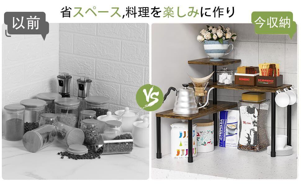 【耐久性と安定性】この調味料棚には滑り止めの足が付いており、カウンターを傷つけないようになっています。四角いデザインで安定性が向上しています。面倒な組み立ては不要で、組み立ても簡単で、女性一人でも行えます。清潔で整頓された北欧スタイルで、インテリアとしても素敵です。環境に優しい竹素材で作られており、お手入れはとても簡単です。お湯で拭くだけで汚れを落とします。