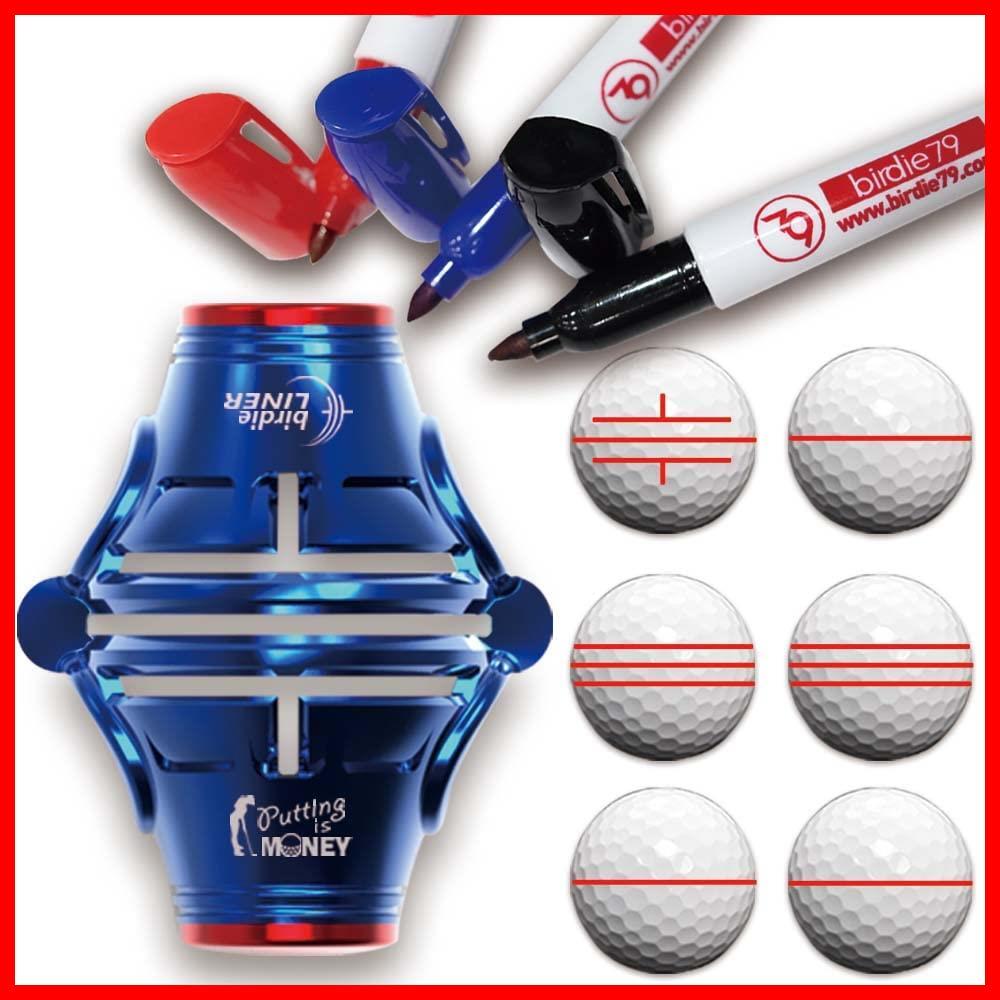 BIRDIE79 バーディーライナー ブラック ゴルフボールマーカー アライメントツールキット - 360度トリプルラインステンシル 3色ペンとギフトボックス付き - プレミアム品質 | ニコニコshops