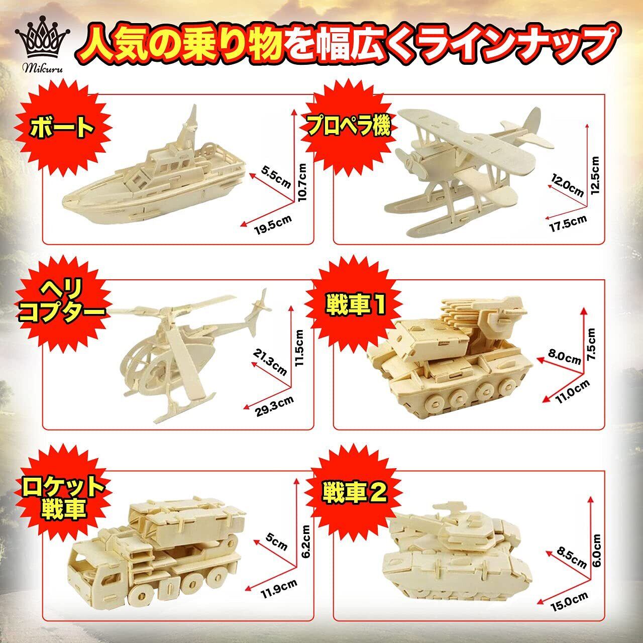 【立体 木製パズル 戦闘車 6種類セット!】興味を引く戦闘車 木製 の組み立て式立体パズル 6種類セットです。